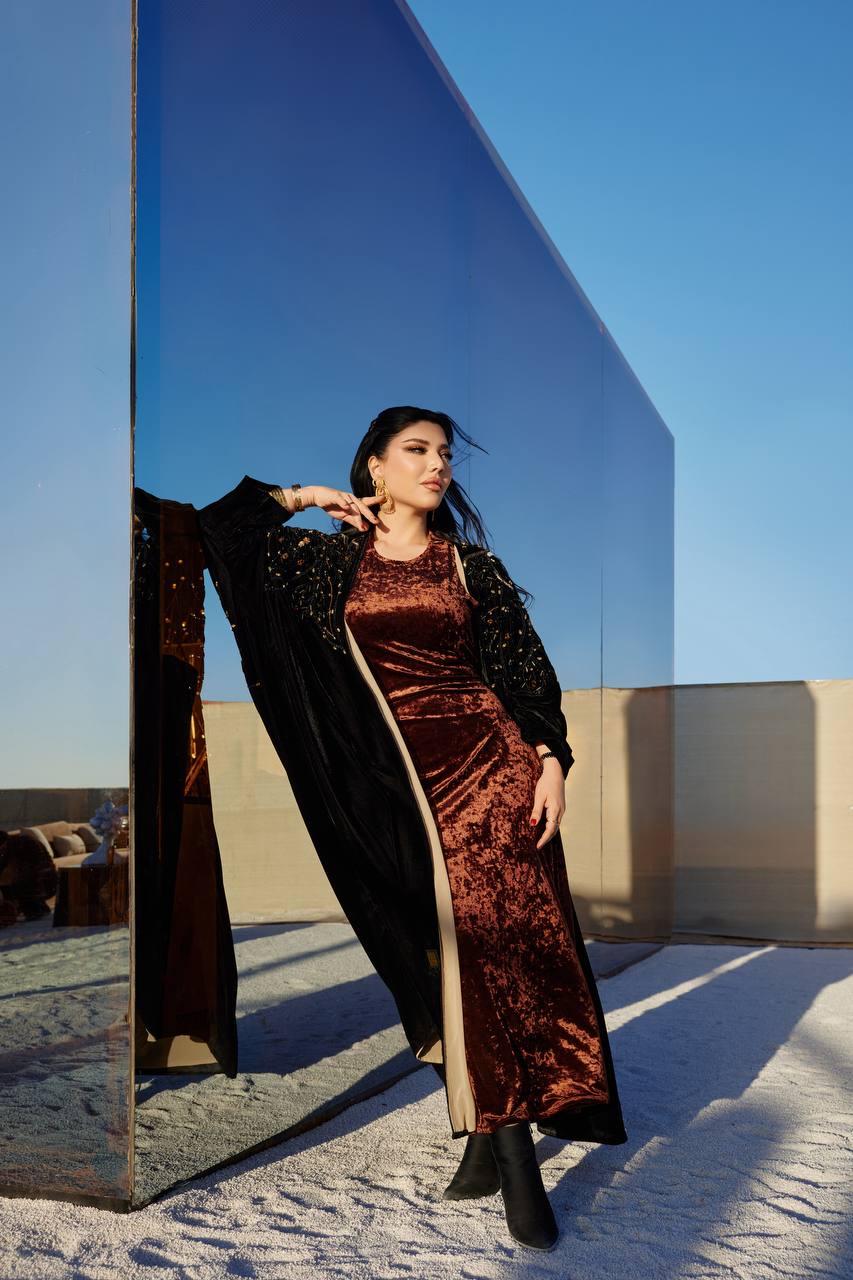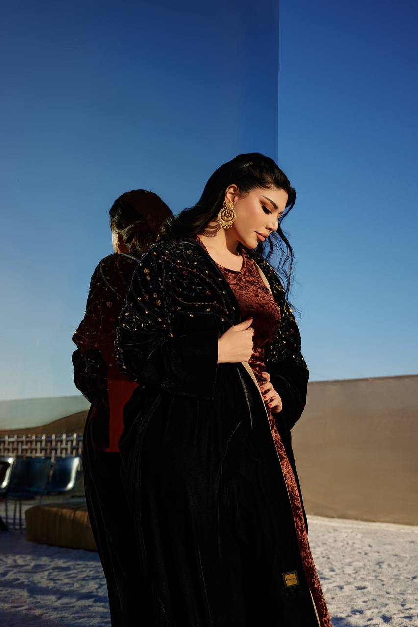 عباية بشت مخمل باللون الاسود مع شك يدوي . C:IB381