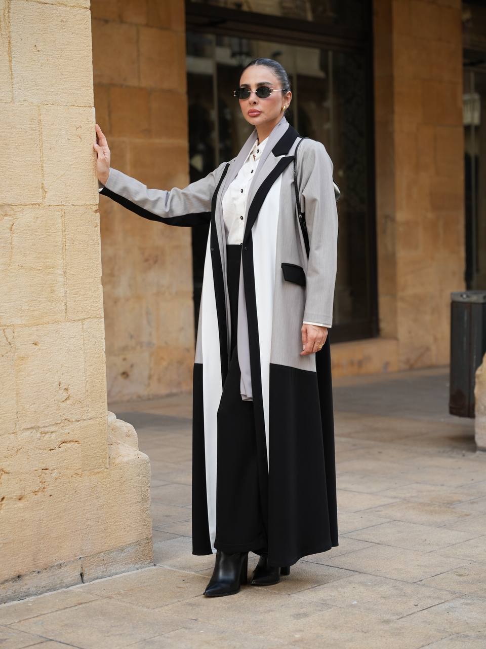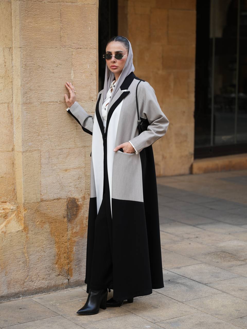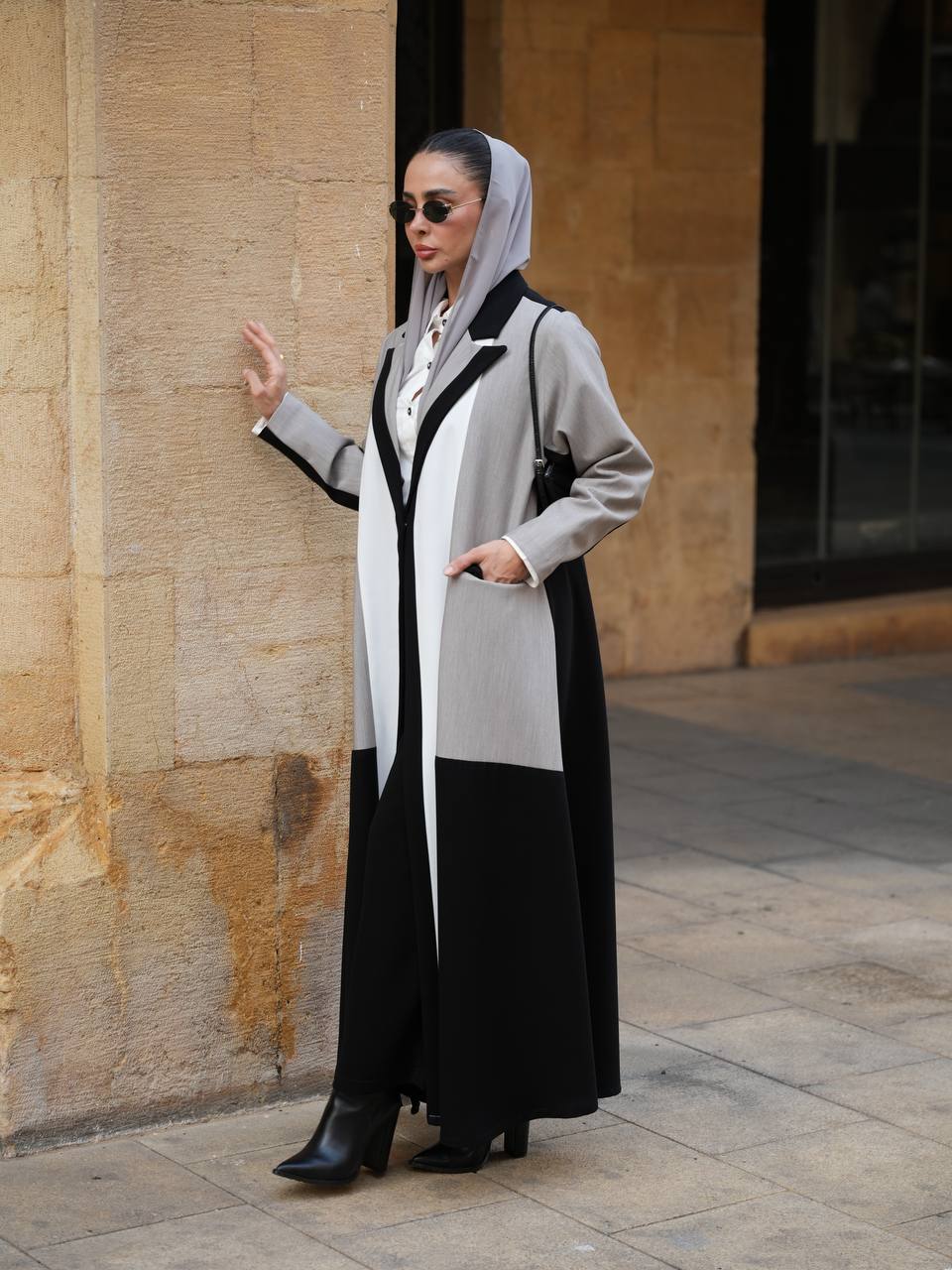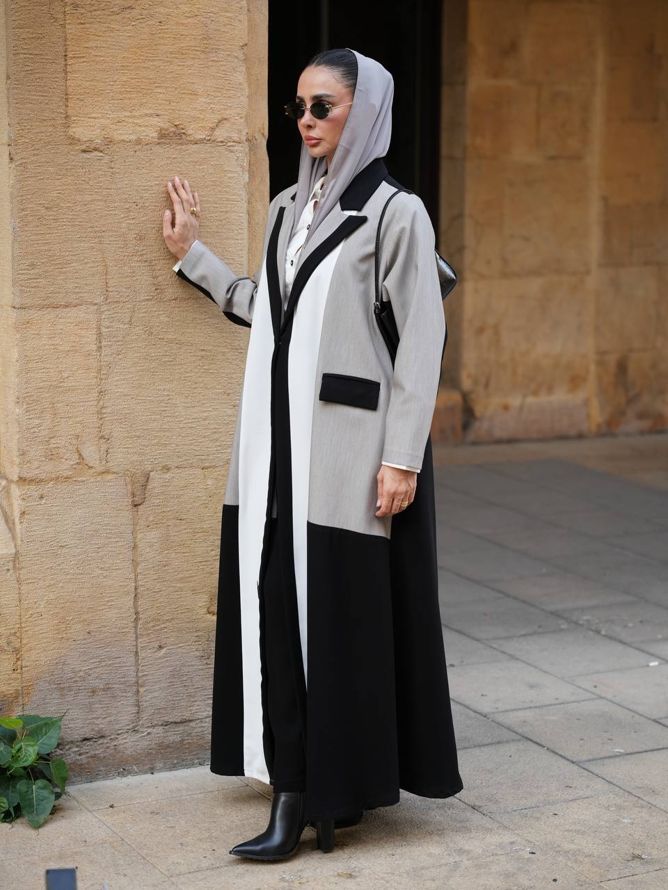 عباية بليزر بخام كريب الممتاز باندماج لونين الاسود و الرمادي مع اضافة تفاصيل راقية باللون الابيض يمنحها طابع عصري مميز ، تتميز العباية بتصميم انيق و عملي يناسب الدوام ، الطلعات و الجامعات . متوفرة بجميع المقاسات و الطول حسب طلبكم . لاطلالة متكاملة يمكنكم اختيار الطقم الداخلي من قسم الداخلية بالموقع . ( السعر للعباية فقط و لا يشمل الطقم الداخلي )
