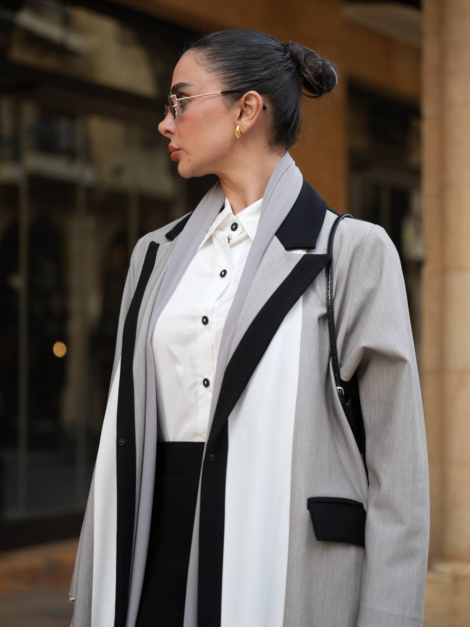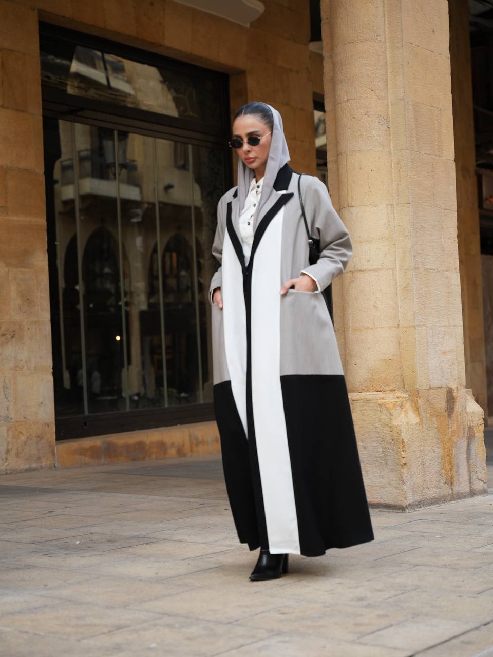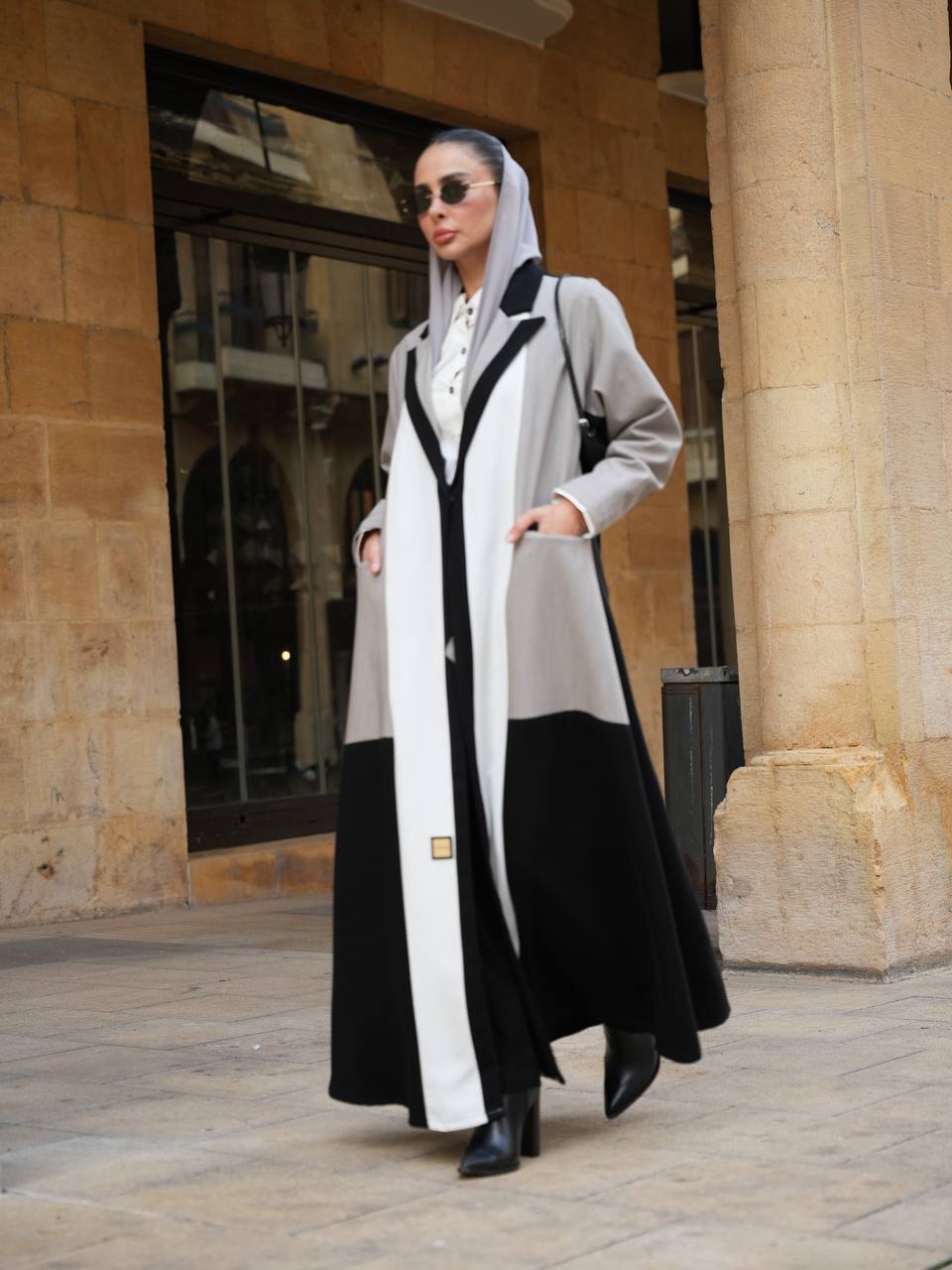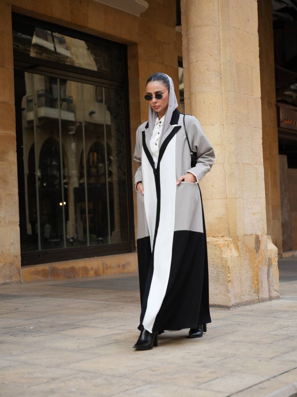 عباية بليزر بخام كريب الممتاز باندماج لونين الاسود و الرمادي مع اضافة تفاصيل راقية باللون الابيض يمنحها طابع عصري مميز ، تتميز العباية بتصميم انيق و عملي يناسب الدوام ، الطلعات و الجامعات . متوفرة بجميع المقاسات و الطول حسب طلبكم . لاطلالة متكاملة يمكنكم اختيار الطقم الداخلي من قسم الداخلية بالموقع . ( السعر للعباية فقط و لا يشمل الطقم الداخلي )